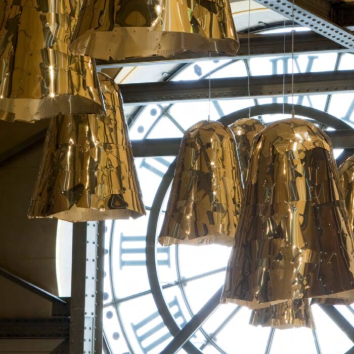 Una volta accesa, Campana produce infiniti giochi di luce e riflessi. Un fascio concentrato cade dall’alto in modo morbido, mentre delicate fessure luminose filtrano tra le giunzioni delle lamine, dando vita a un’illuminazione magica e suggestiva.