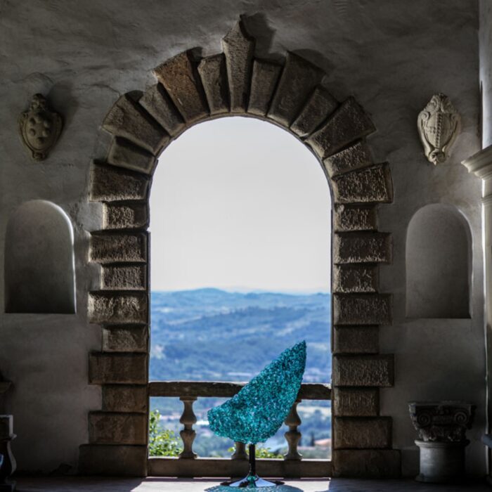 La poltrona Margherita di Edra, disegnata da Jacopo Foggini, è un capolavoro del design italiano contemporaneo. La sua forma scultorea nasce dall’intreccio e dalla modellazione di fili di policarbonato, che danno vita a una struttura trasparente e luminosa, capace di riflettere la luce come un’opera d’arte. Audace e raffinata al tempo stesso, Margherita è ammirata in tutto il mondo per la sua originalità e la sua presenza scenografica.