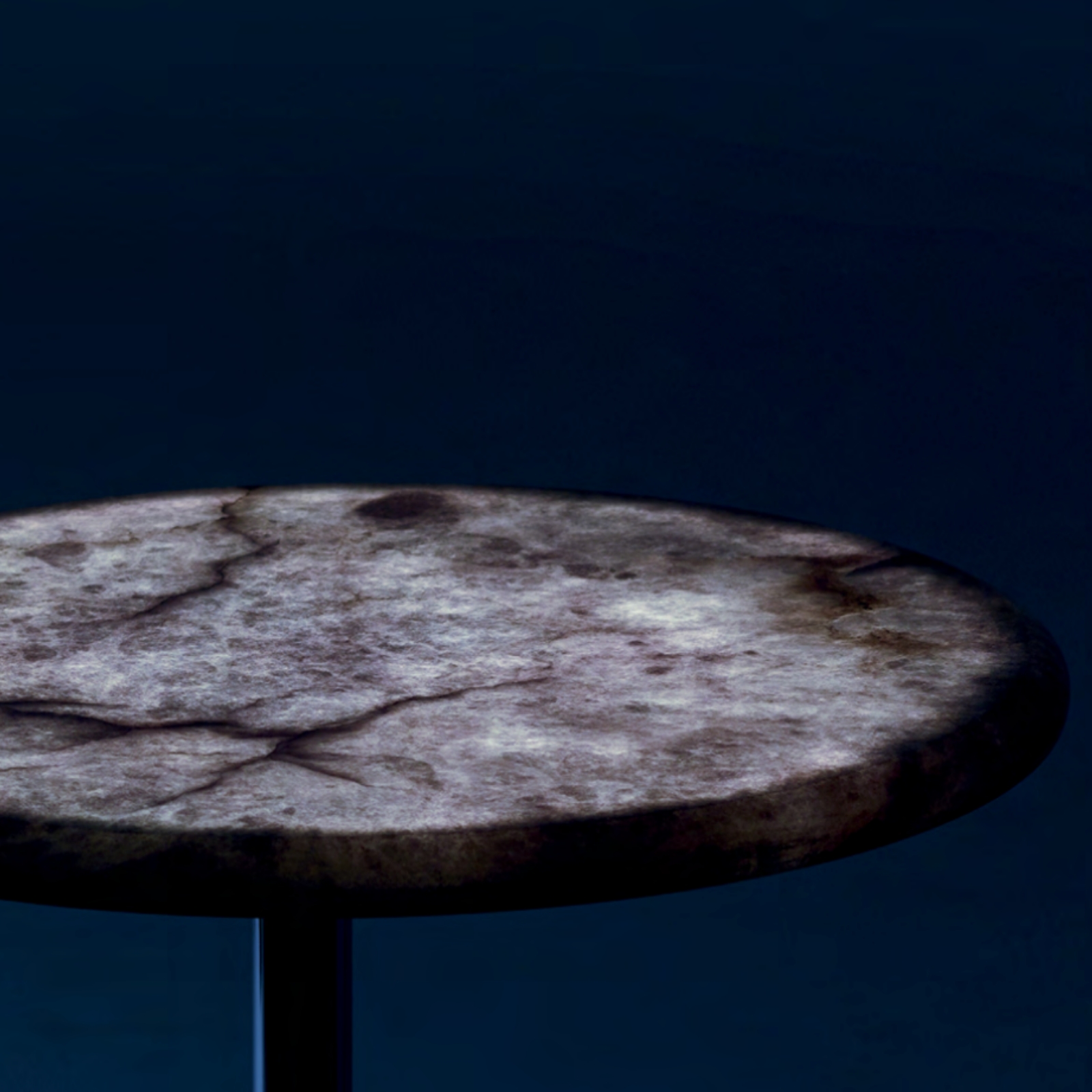 Il piano in pietra è sorretto da un piedistallo in metallo, che unisce solidità ed eleganza. Ideale per soggiorni, lounge e interni esclusivi, Full Moon non è solo un tavolo, ma un oggetto luminoso di arte e design.