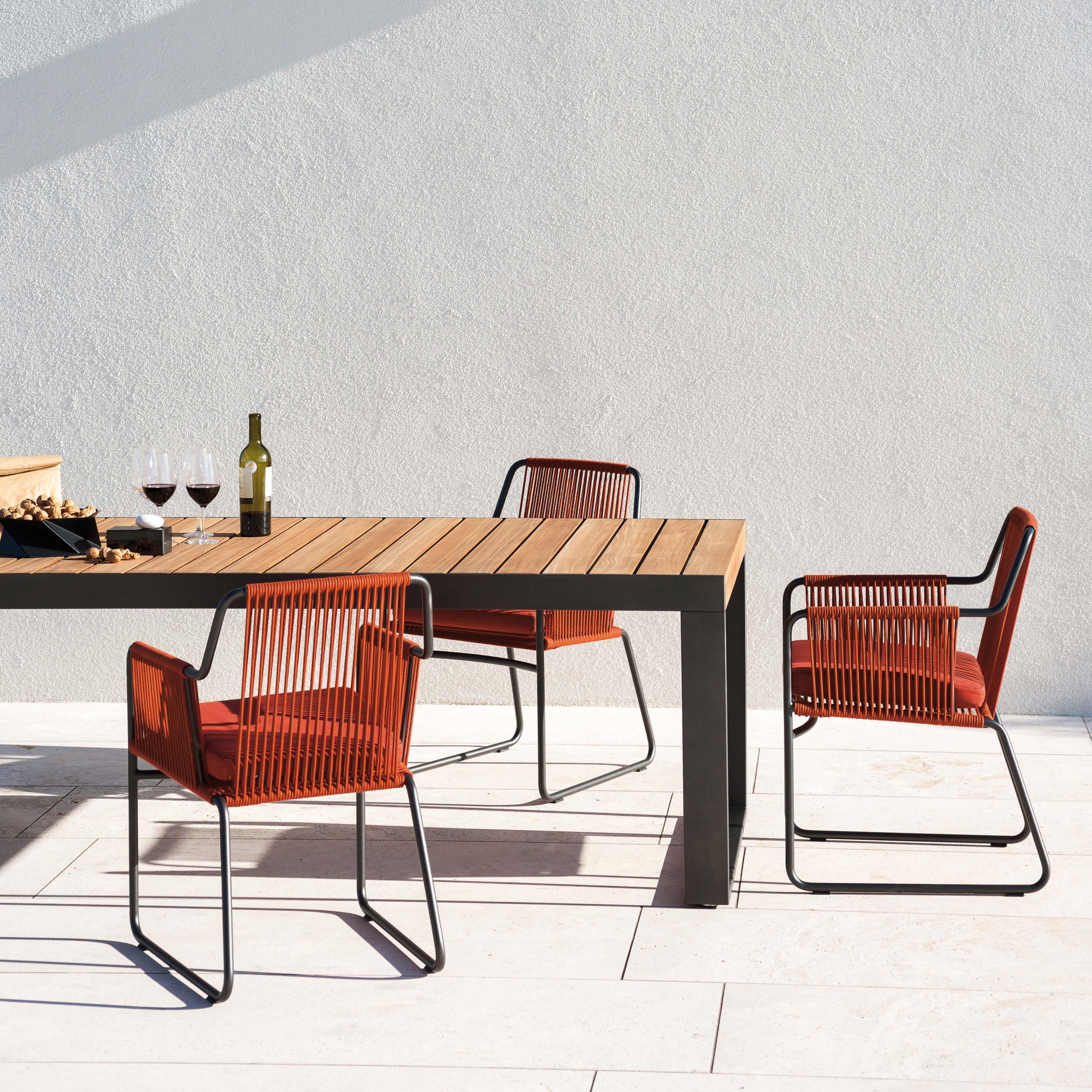 La collezione Dine out di Cassina Outdoor introduce invece un linguaggio più contemporaneo, con strutture in legno e intrecci ad alte prestazioni. Le linee equilibrate di Erica ’19 Outdoor di B&B Italia , invece, offrono una soluzione versatile per terrazze urbane e giardini mediterranei.