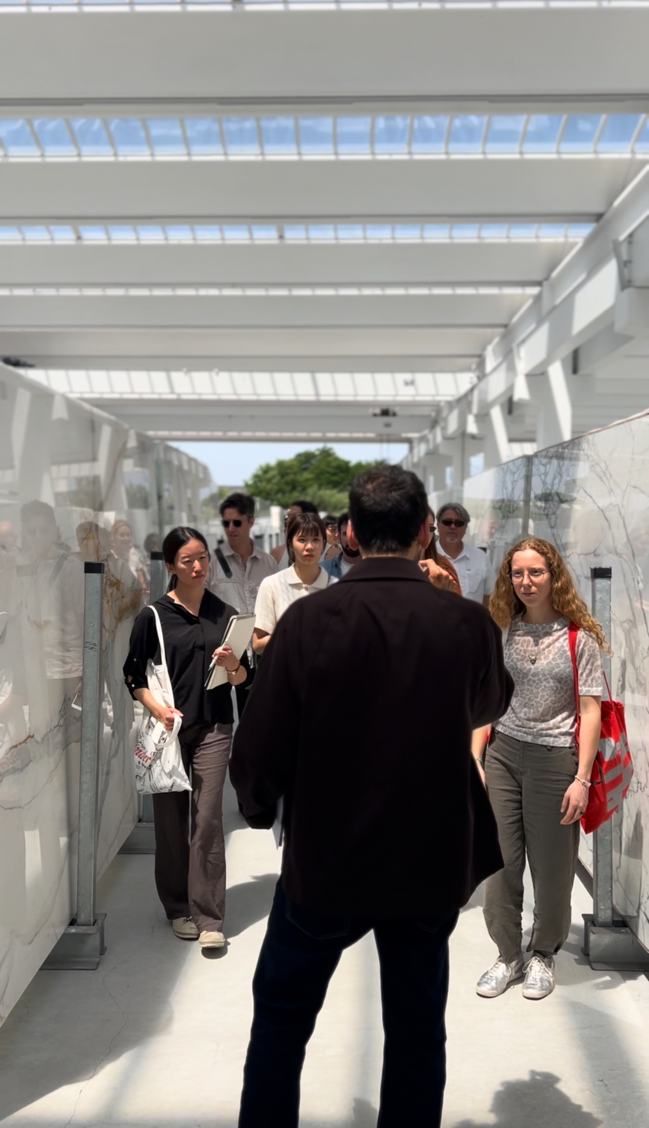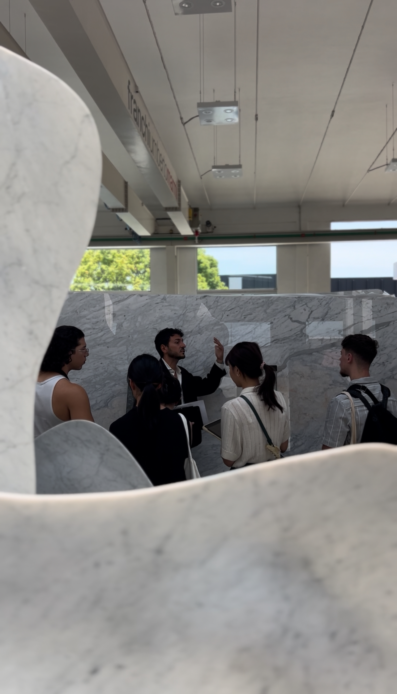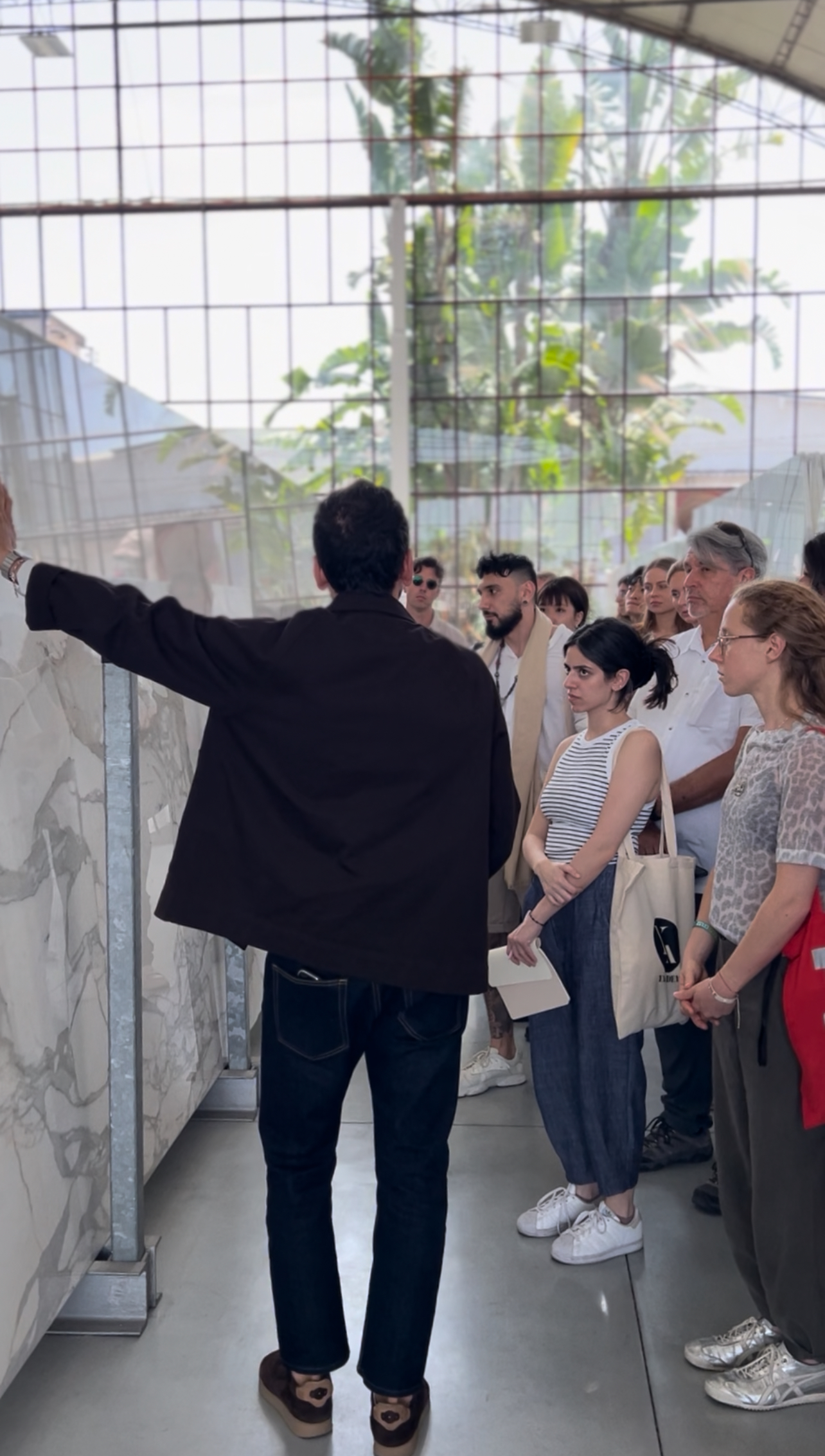 Dopo un coffee break di benvenuto, la classe ha preso parte a un tour esclusivo nel Marble & Design District, guidato dall’architetto Davide Biselli, Project Manager di Interni now: un viaggio immersivo tra laboratori, showroom e aziende in cui il marmo prende forma, dal blocco grezzo all’oggetto di design e all’arte pura. La visita si è conclusa con un’esperienza straordinaria in cava, alla scoperta della materia nel suo luogo d’origine.