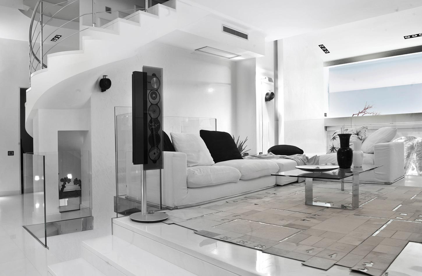 La cucina è Boffi e definisce lo spazio con un’isola d’impatto abbinata a pezzi d’arte moderna locale e capolavori di design. Al terzo piano, infine, si trova la zona notte, arredata con un meraviglioso letto tondo di Redaelli e accanto una vasca idromassaggio.