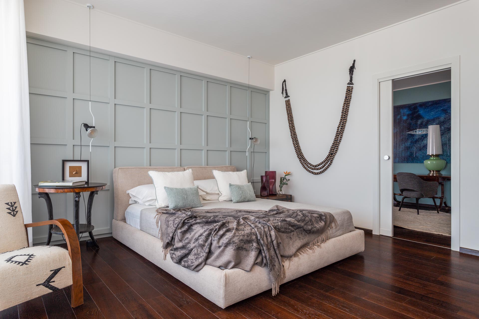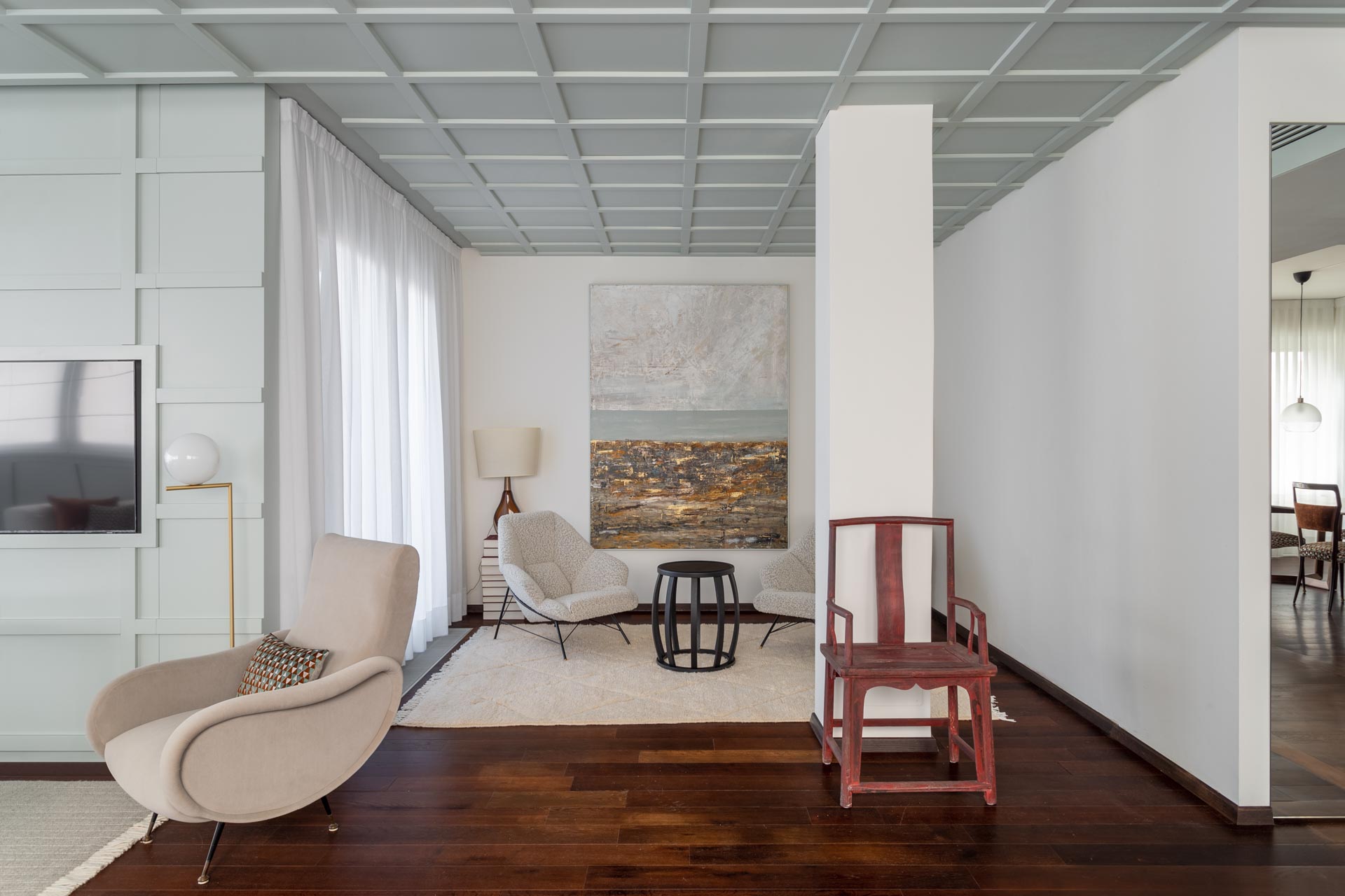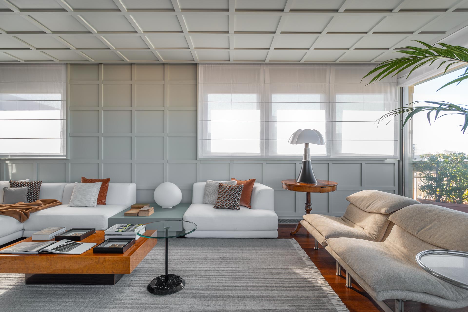 L’attico si trova a Marina di Carrara, uno spazio aperto e conviviale nel quale riunirsi in ogni stagione, circondati da arredi di design e opere d’arte accuratamente selezionate. Un mix perfetto tra design e arte proveniente da ogni parte del mondo, esaltato dalle realizzazioni customizzate delle boiserie in legno laccato e dalle carte da parati di Elitis e Dedar che avvolgono l’appartamento.