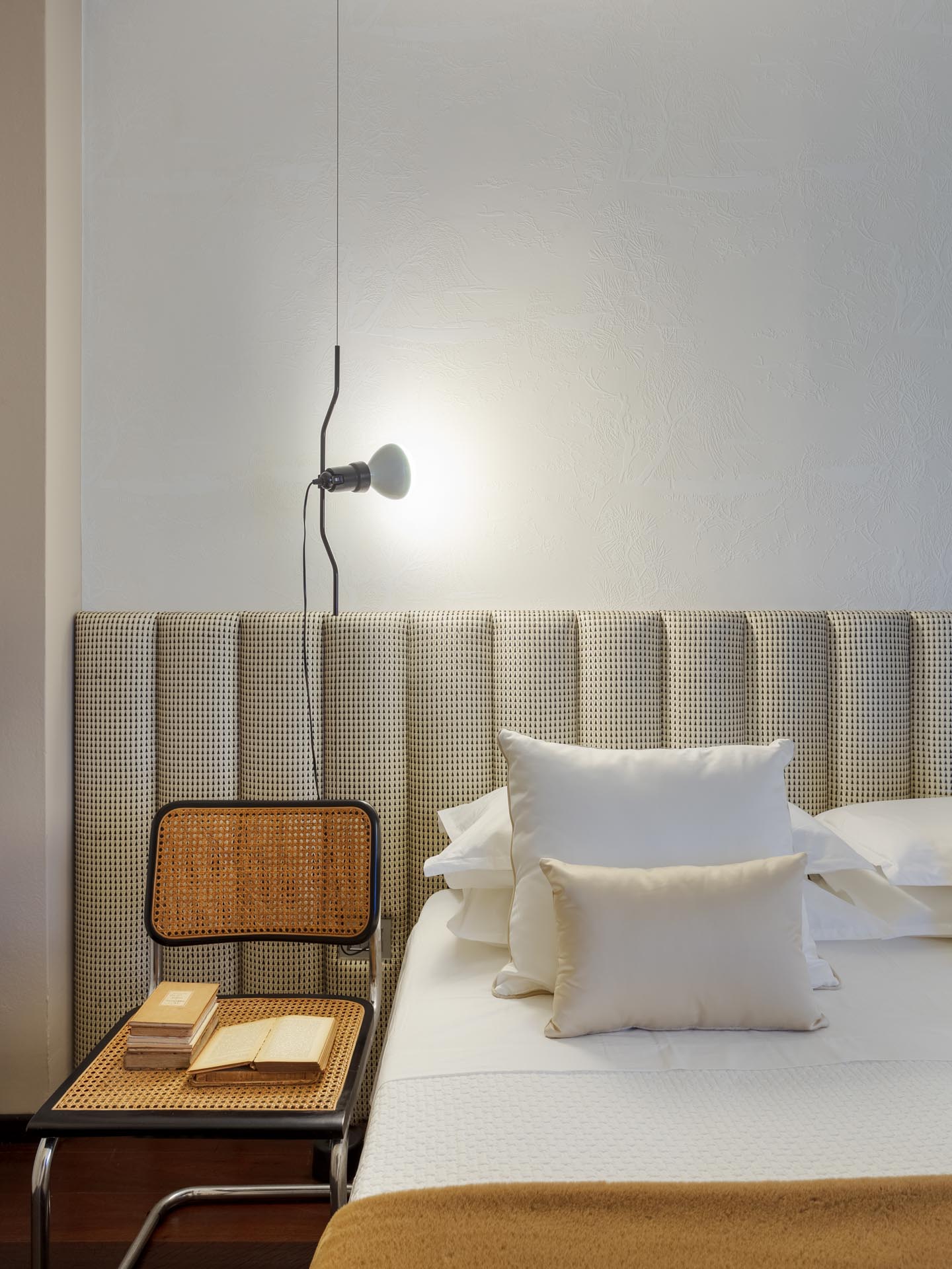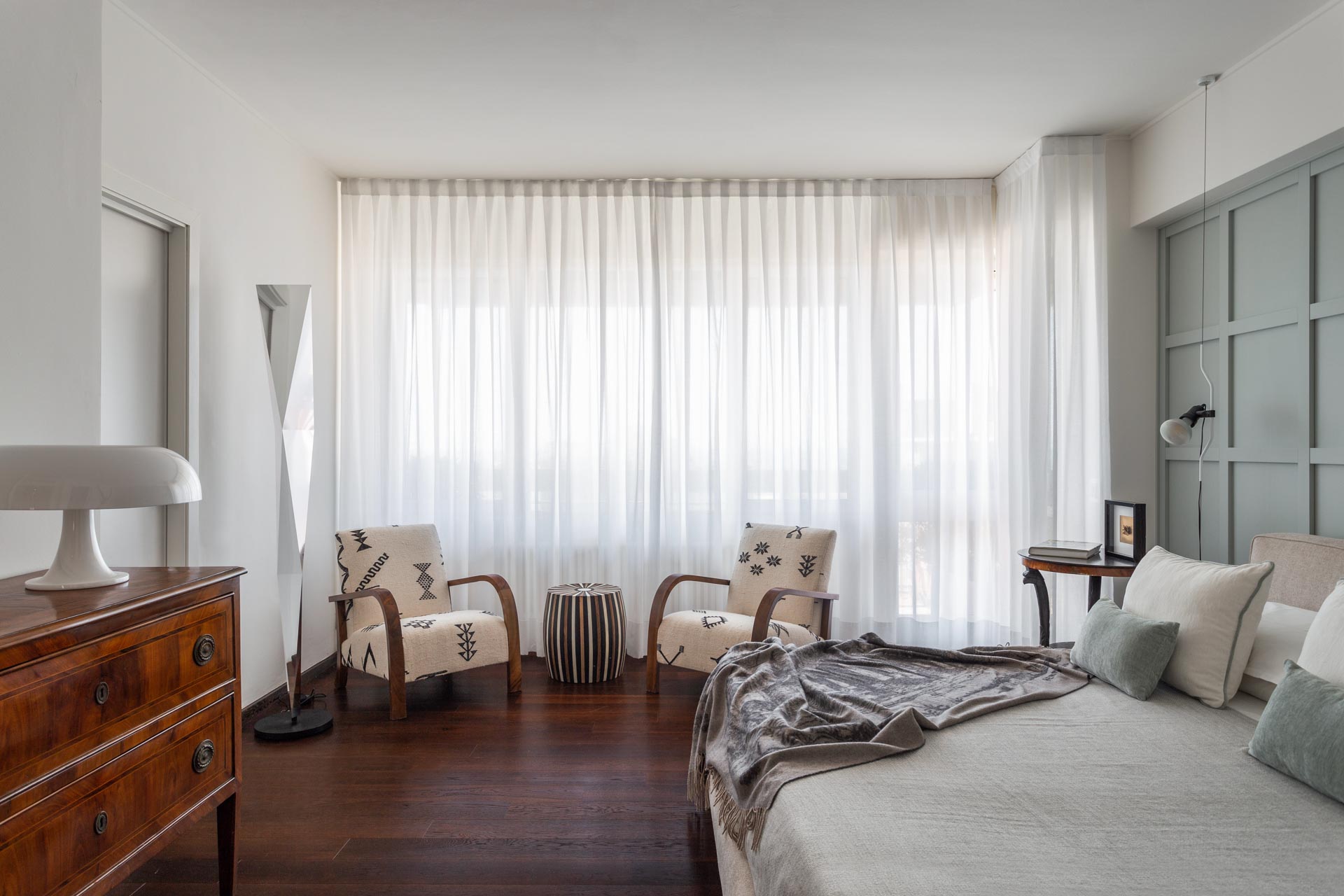 Lo stesso concetto è stato applicato all’illuminazione, con lampade iconiche di design come Flos, Martinelli Luce, Artemide, che si coniugano con lampade vintage presenti in vari angoli del progetto. Una fusione perfetta di icone della modernità, arte contemporanea e pezzi vintage, creando un attico dal gusto connotato che si abbina perfettamente al contesto in cui si trova.
