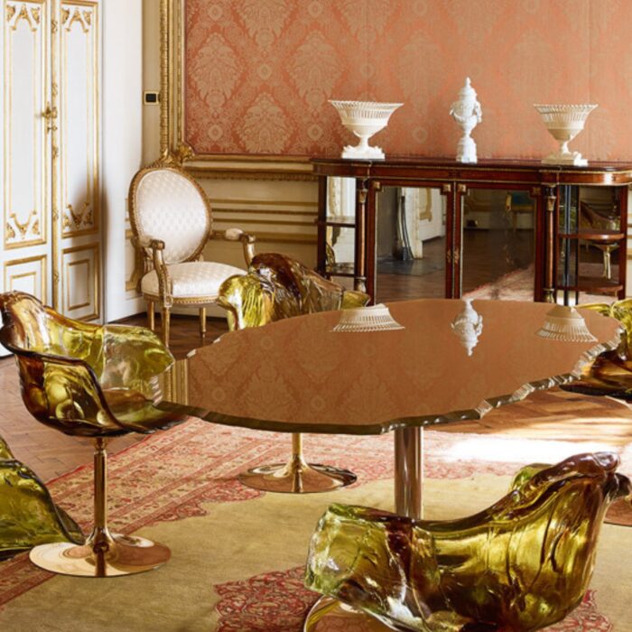 Sculptural and functional at the same time, the Egeo table becomes the centerpiece of living rooms, dining areas, and sophisticated interiors. Its polycarbonate structure ensures durability and strength, while its glass-like brilliance adds refinement and originality to any space.